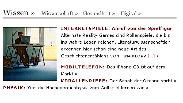 Aus dem Inhaltsverzeichnis von www.zeit.de, 12.07.2008